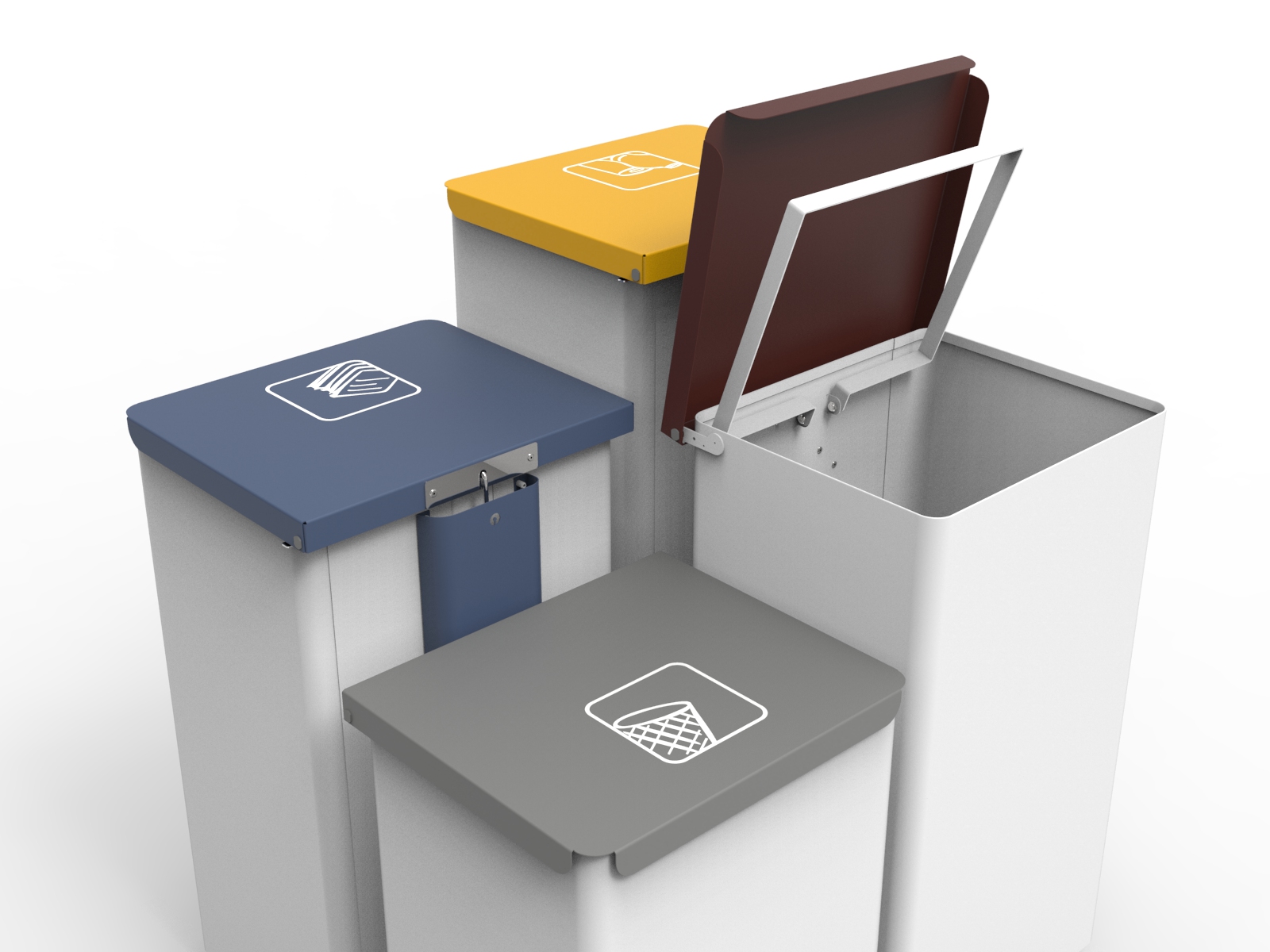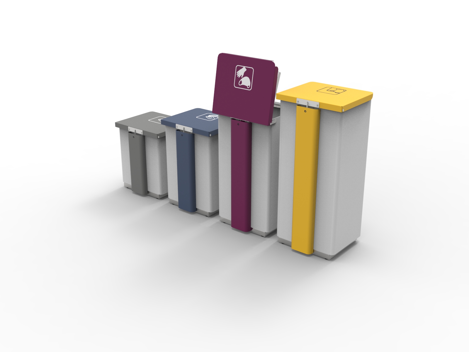 Están disponibles en diferentes capacidades y acabados, según su ubicación, y dispones de modelos de cuerpo opaco, perforado o con ventana transparente. Todos los modelos incluyen aro porta bolsas. Puedes personalizarla mediante colores y vinilos, según el tipo de residuo que deban recoger.