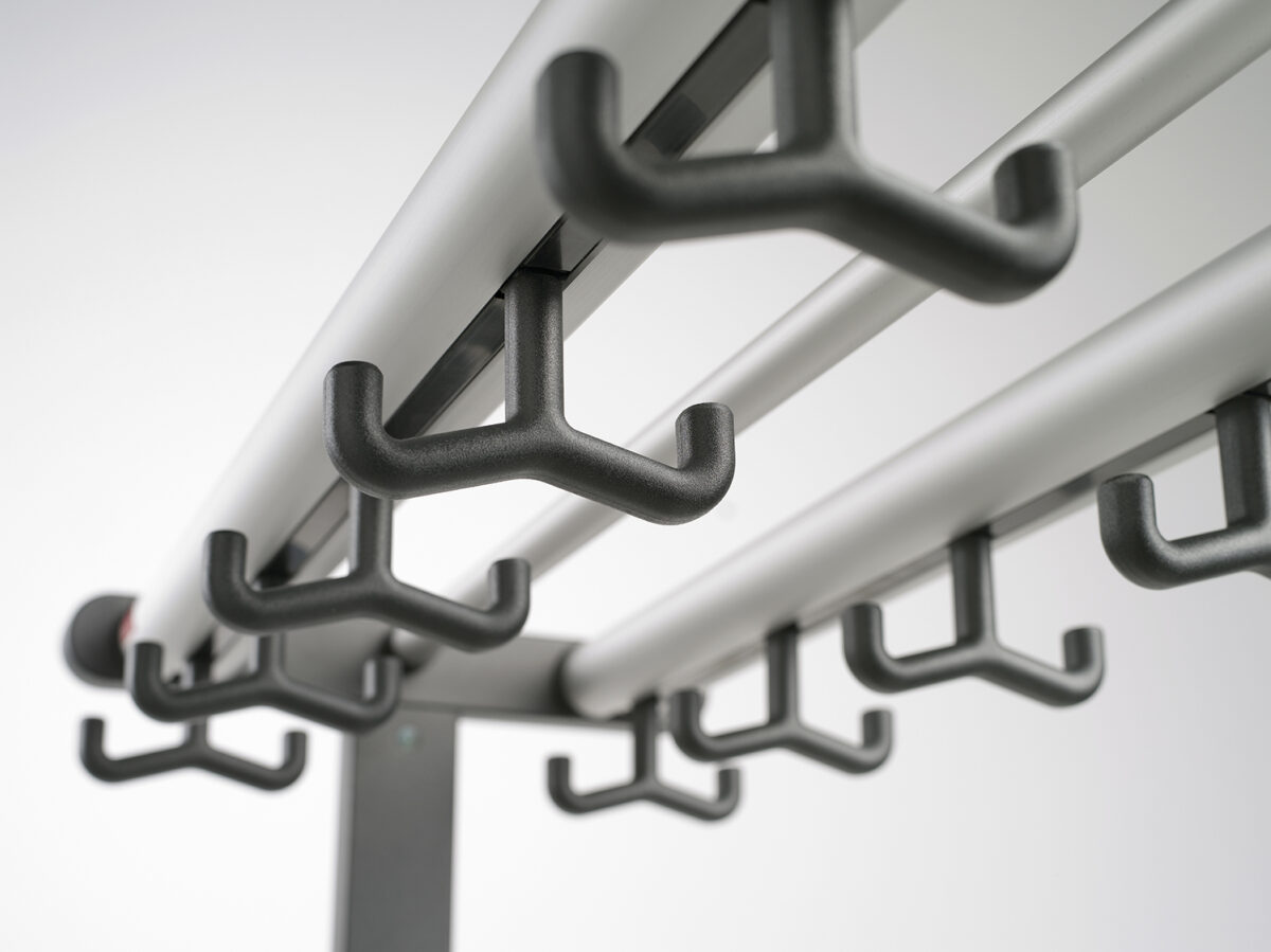 Disponible en dos alturas y con una longitud de 1,60 metros, Tertio Junior está equipado con dos filas de ganchos dobles, ofreciendo el doble de capacidad para abrigos y mochilas. Así, cada niño tiene su propio espacio.